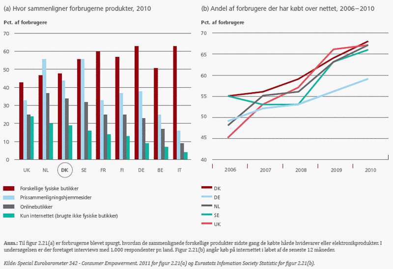 Sammenlignet med forbrugerne i andre europæiske lande har danske forbrugere gode muligheder for at udnytte mulighederne på markedet. Danske forbrugere udnytter internettet, når de handler. Kun forbrugere i Nederlandene og i Storbritannien bruger internettet mere end forbrugerne i Danmark. Internettet giver forbrugerne bedre mulighed for at sammenligne oplysninger – eksempelvis priser – og gennemføre et køb fra et bredt udvalgt af virksomheder.