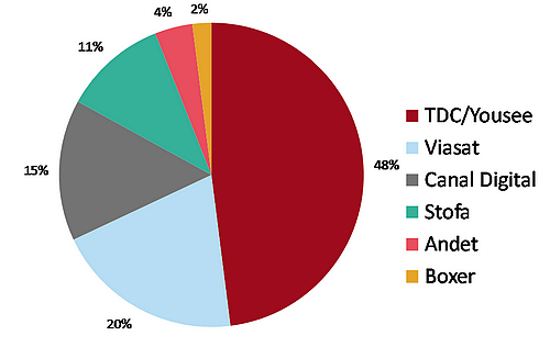 I Danmark findes der seks distributører af tv-kanaler. Reelt har den enkelte husstand dog kun mulighed for at vælge mellem en eller to af disse udbydere, da lokale forhold sætter begrænsninger for tilslutningsmulighederne. Det er med til at begrænse konkurrencen på markedet.